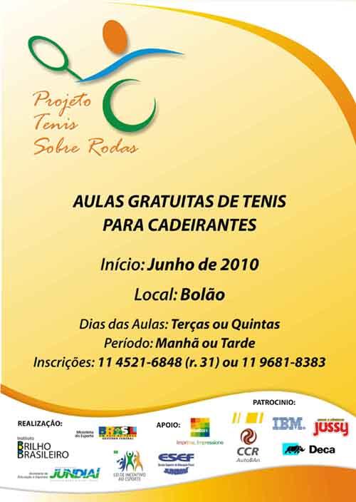 Os participantes receberão uniformes, bem como terão à disponibilidade todo o material necessário para o desenvolvimento do projeto. Apesar do limite de 40 vagas iniciais, todos os cadeirantes interessados estão convidados a se inscreverem no Projeto Tênis sobre Rodas.