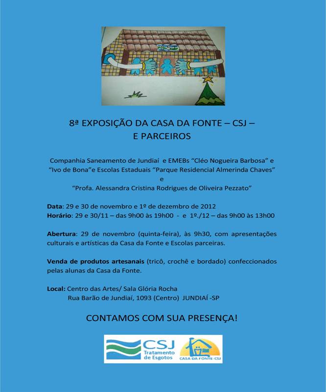 A Casa da Fonte realiza entre os dias 29/11 a 01/12/12, a 8ª Exposição Casa da Fonte e parceiros..