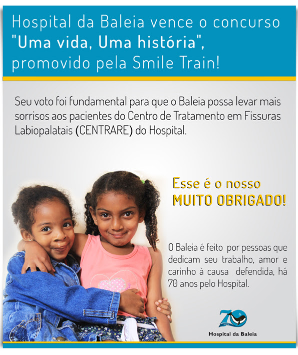 Gostaríamos de compartilhar com vocês o prêmio recebido pelo Hospital do Baleia no concurso “UMA VIDA, UMA HISTÓRIA”. Instituição séria, dedicada a realizar ações na área da saúde, através de profissionais dedicados, além de promover a oportunidade da ajuda cidadã através do voluntariado e uma rede de contatos incrível.